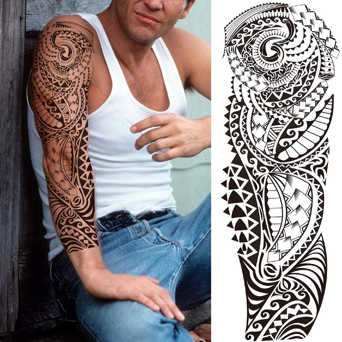 Size: 8 Sheets Full Sleeve Temporary Tattoos For Women 46x17cm 18.1'X6.6' And 3 Sheets Large Arm Temporary Tatoos For Men 21x15cm 7.8'X5.9'.