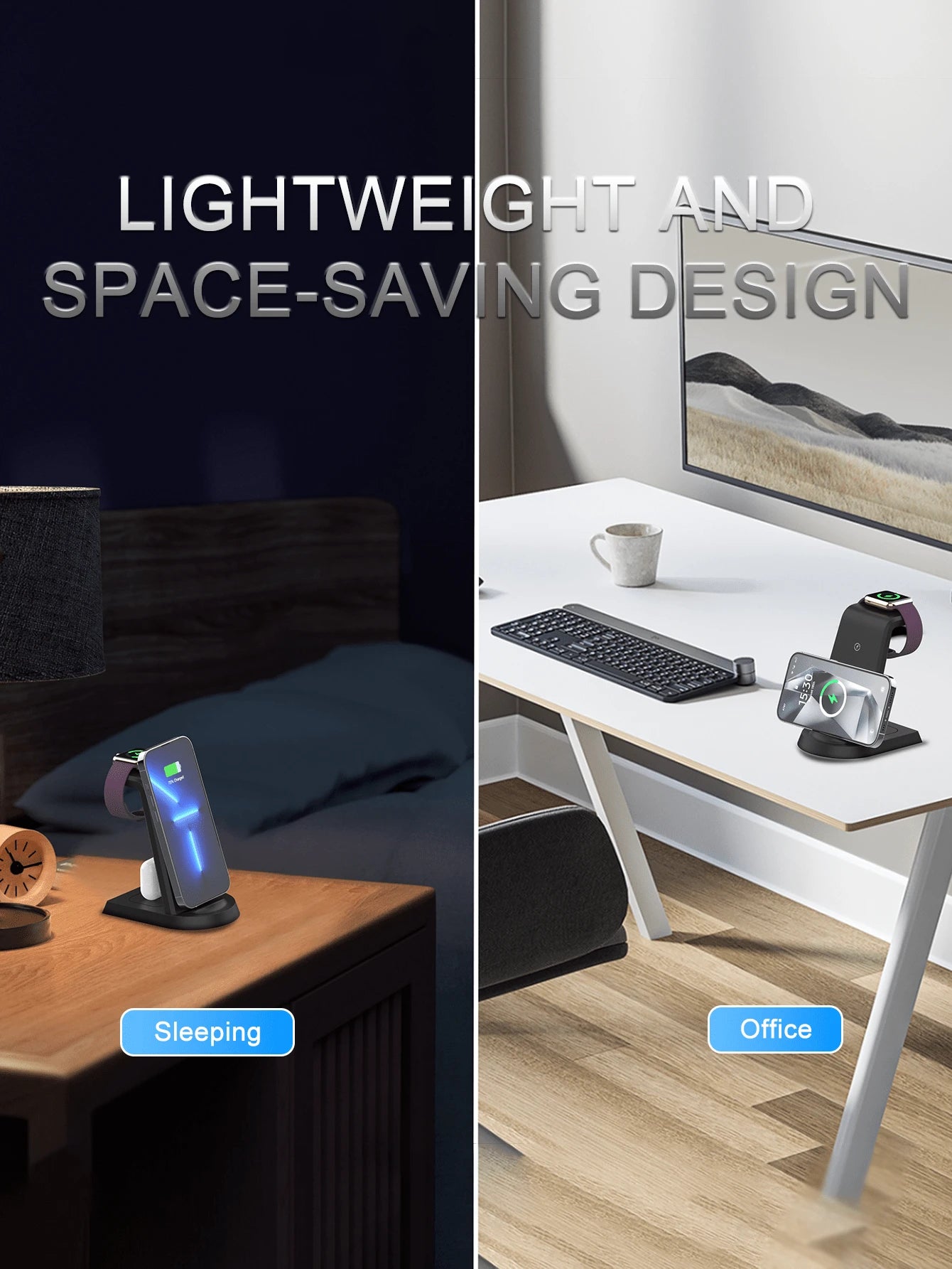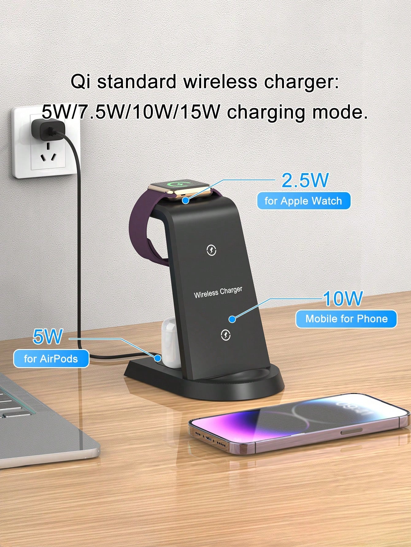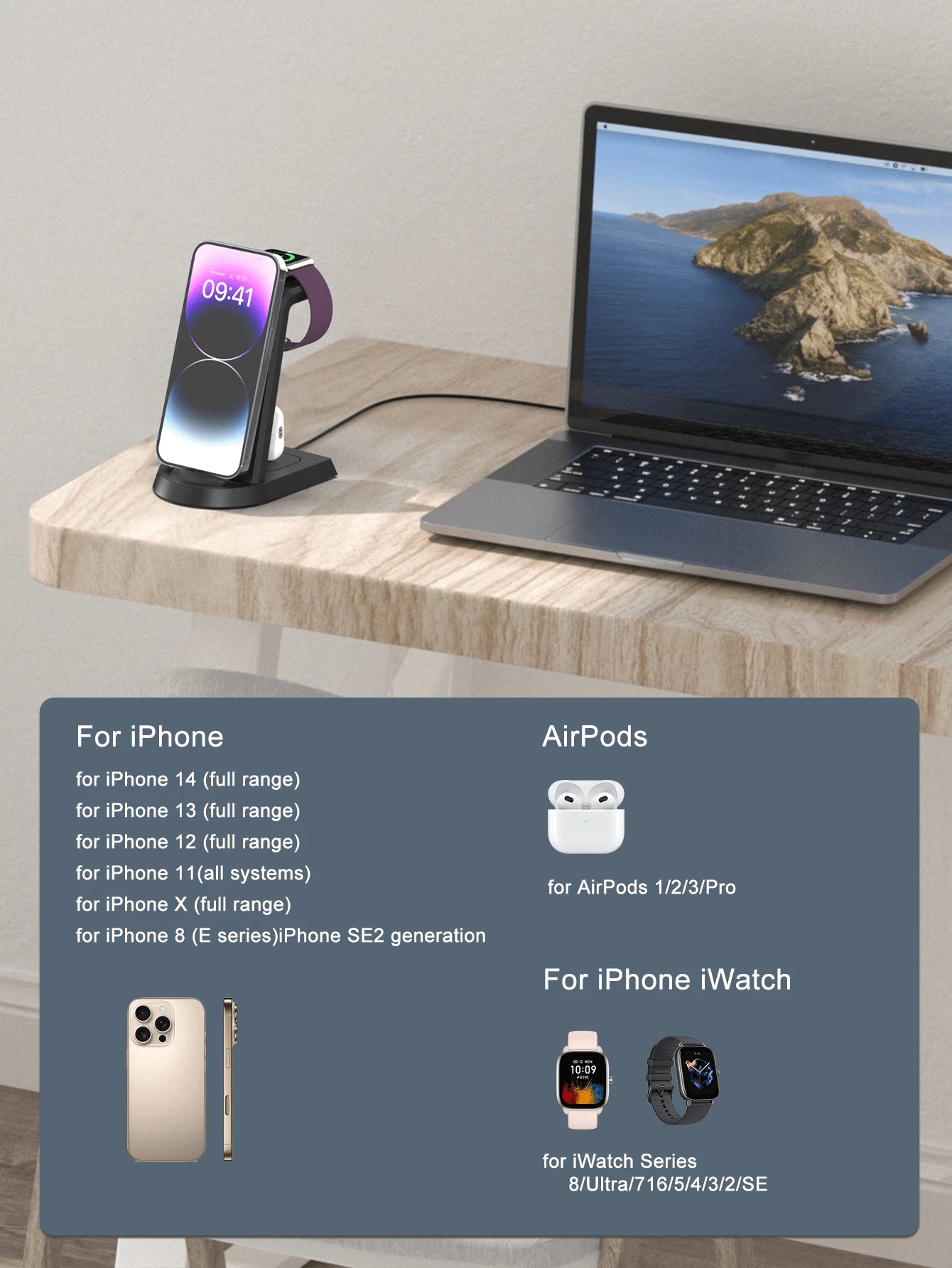 Designed for efficiency, this 3-in-1 iPhone Charging Station simultaneously powers your iPhone, Apple Watch, and AirPods from a single compact hub. Its integrated design eliminates cable clutter, providing a streamlined charging experience ideal for workspaces or nightstands. With built-in safety features to prevent overcharging and overheating, it ensures reliable and secure charging for all your Apple devices. This station combines convenience and protection, optimising your device management with professional-grade performance.