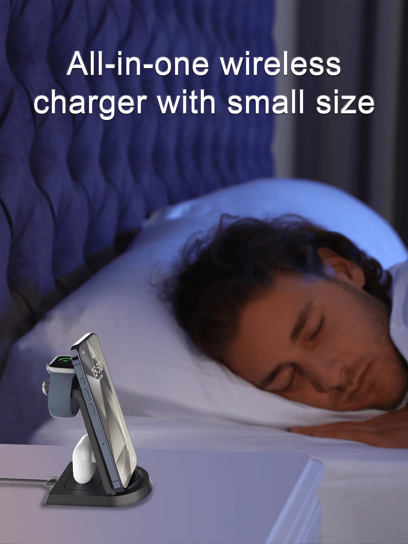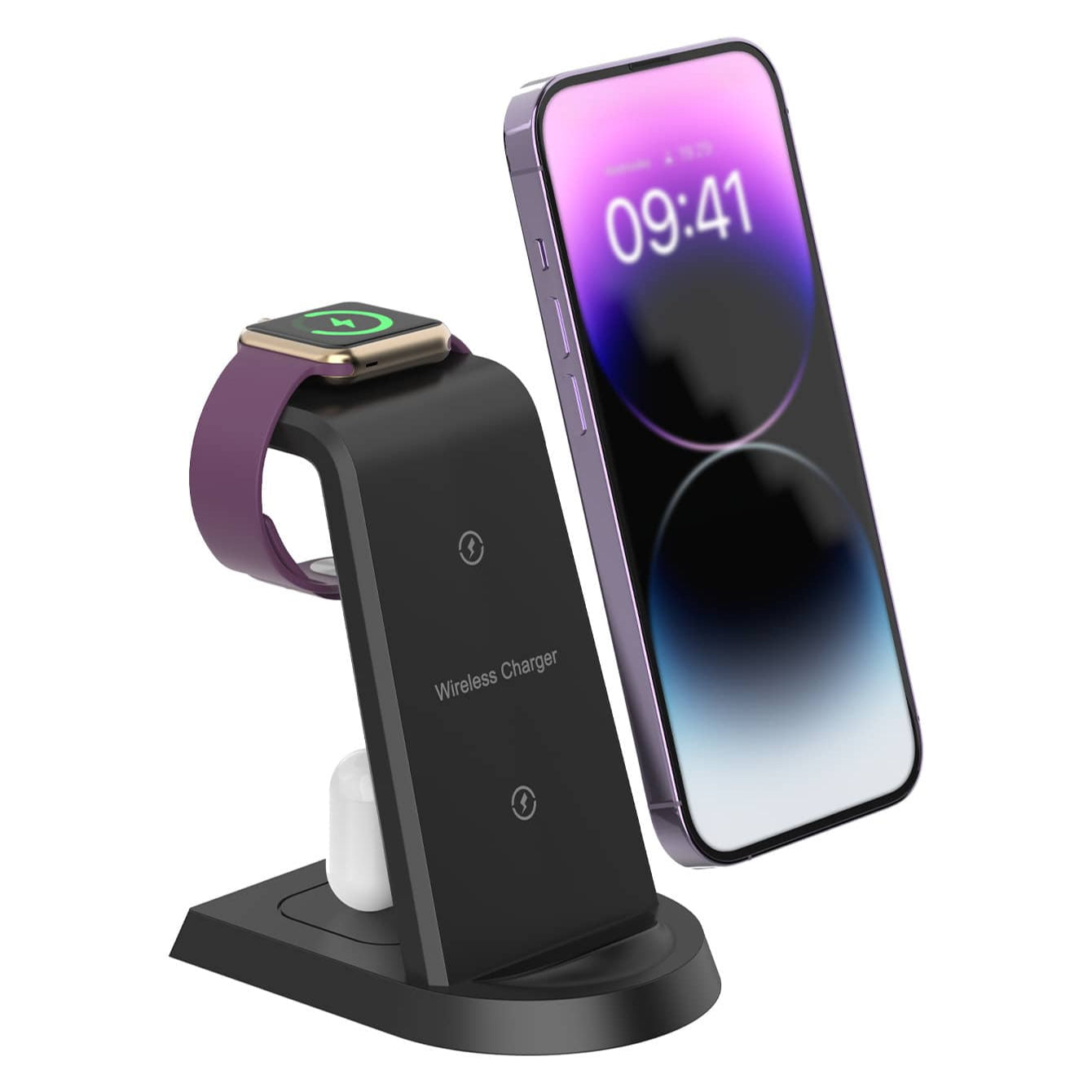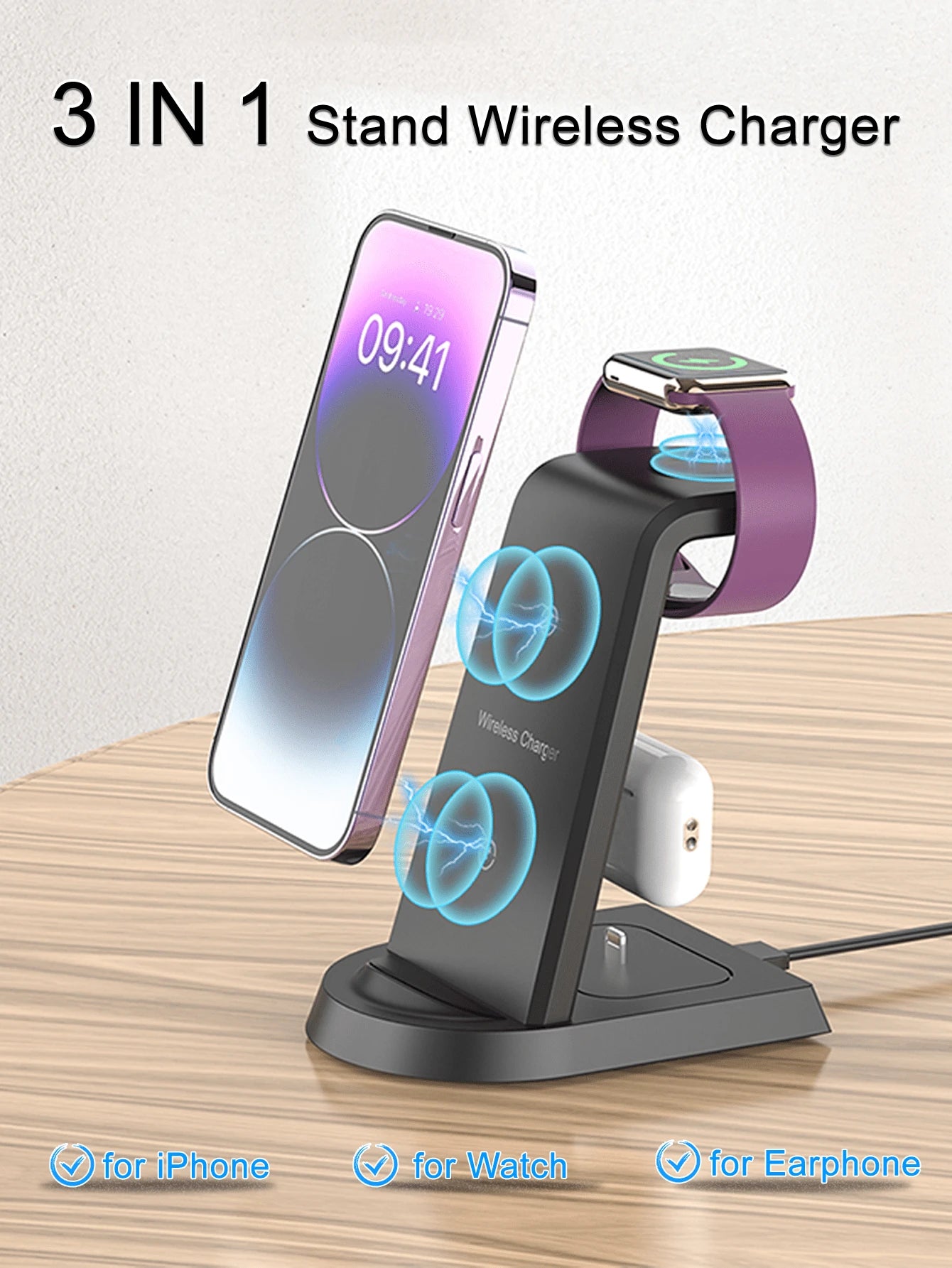 Designed for efficiency, this 3-in-1 iPhone Charging Station simultaneously powers your iPhone, Apple Watch, and AirPods from a single compact hub. Its integrated design eliminates cable clutter, providing a streamlined charging experience ideal for workspaces or nightstands. With built-in safety features to prevent overcharging and overheating, it ensures reliable and secure charging for all your Apple devices. This station combines convenience and protection, optimising your device management with professional-grade performance.