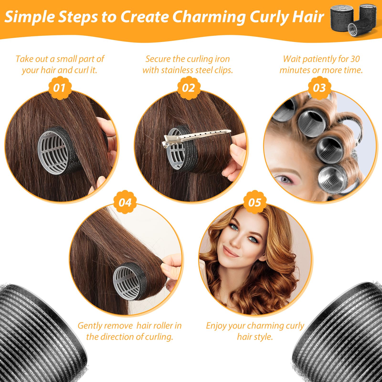 - 【Save Money & Save Time】This big hair rollers set can be DIY into any curly hair suitable for long, short, medium, thin, and thick volume bangs. With black hair rollers, you don't need to spend a long time in the salon to get a perm, which also saves you a lot of money. Self-grip hair rollers perfect for long, medium, and short hair can help you get the hairstyle you want quickly and effectively. The hair roller with clips is also very suitable as a gift for your family, friends, and lovers