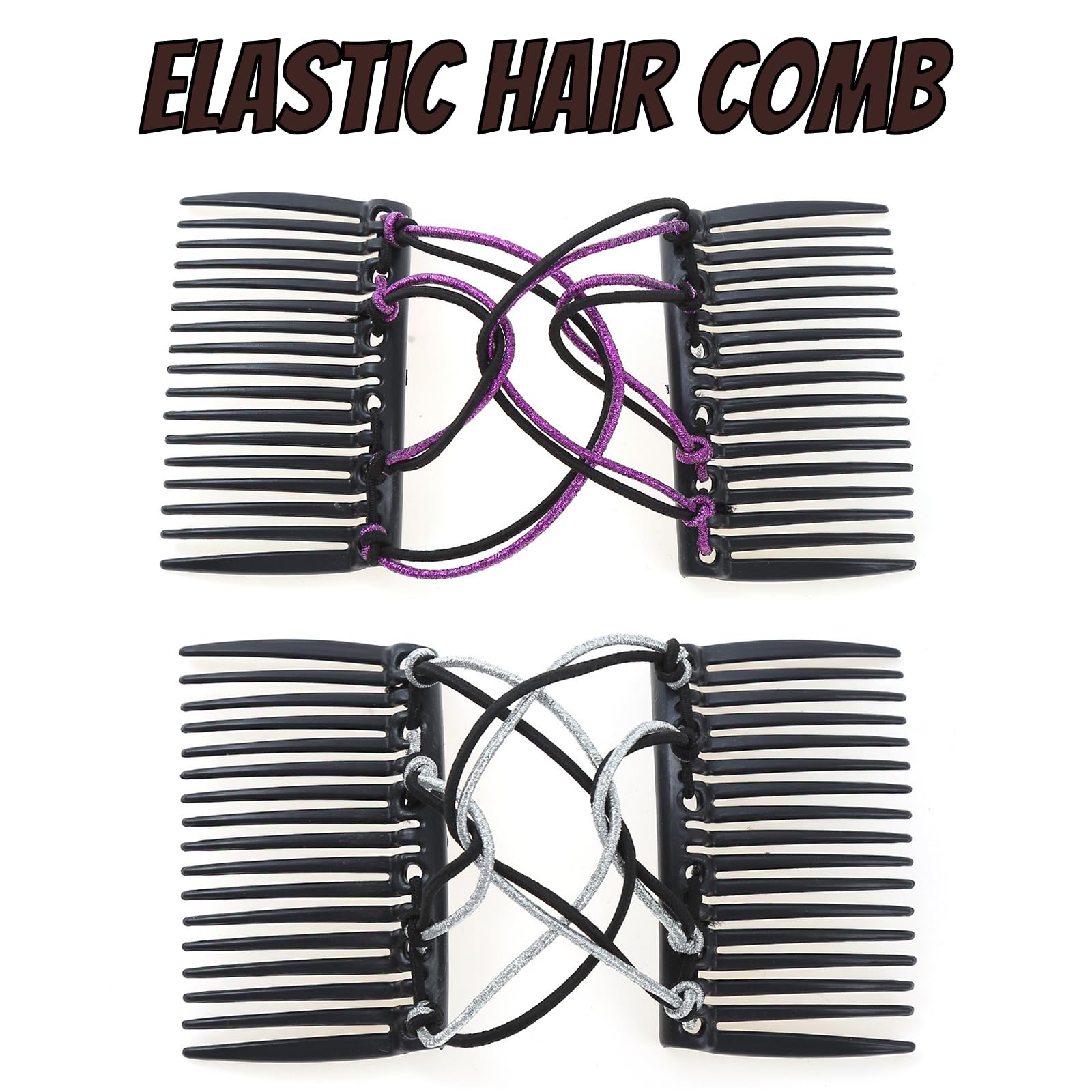 5 Pieces Stretchy Magic Adjustable Elastic Hair Comb Clips & Pins - No Crease Vintage Bun Makers for Women Girls, Curly Thick Wavy Ponytail Hair Accessories