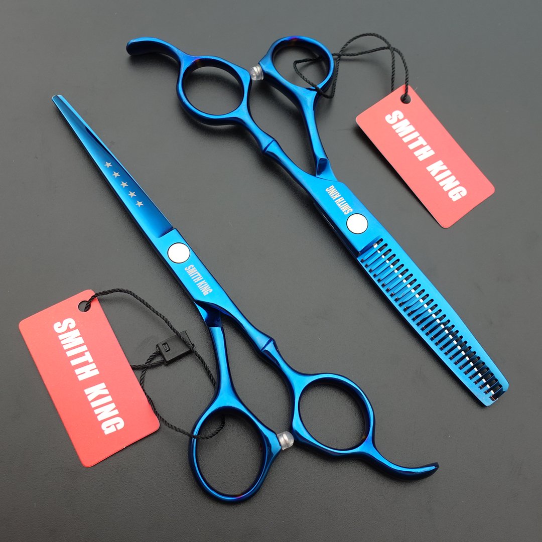 6.0 Inches Professional hair cutting thinning scissors set with razor (Blue)
