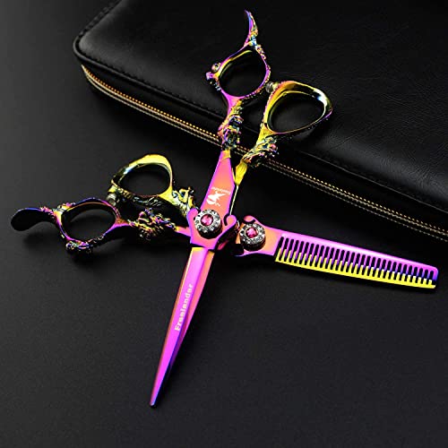 6.0" Professional Japan 440C Hair Cutting Shears - Salon Hair Blending/Thinning/Texturizing Scissor for Barber or Home Use A-rainbow