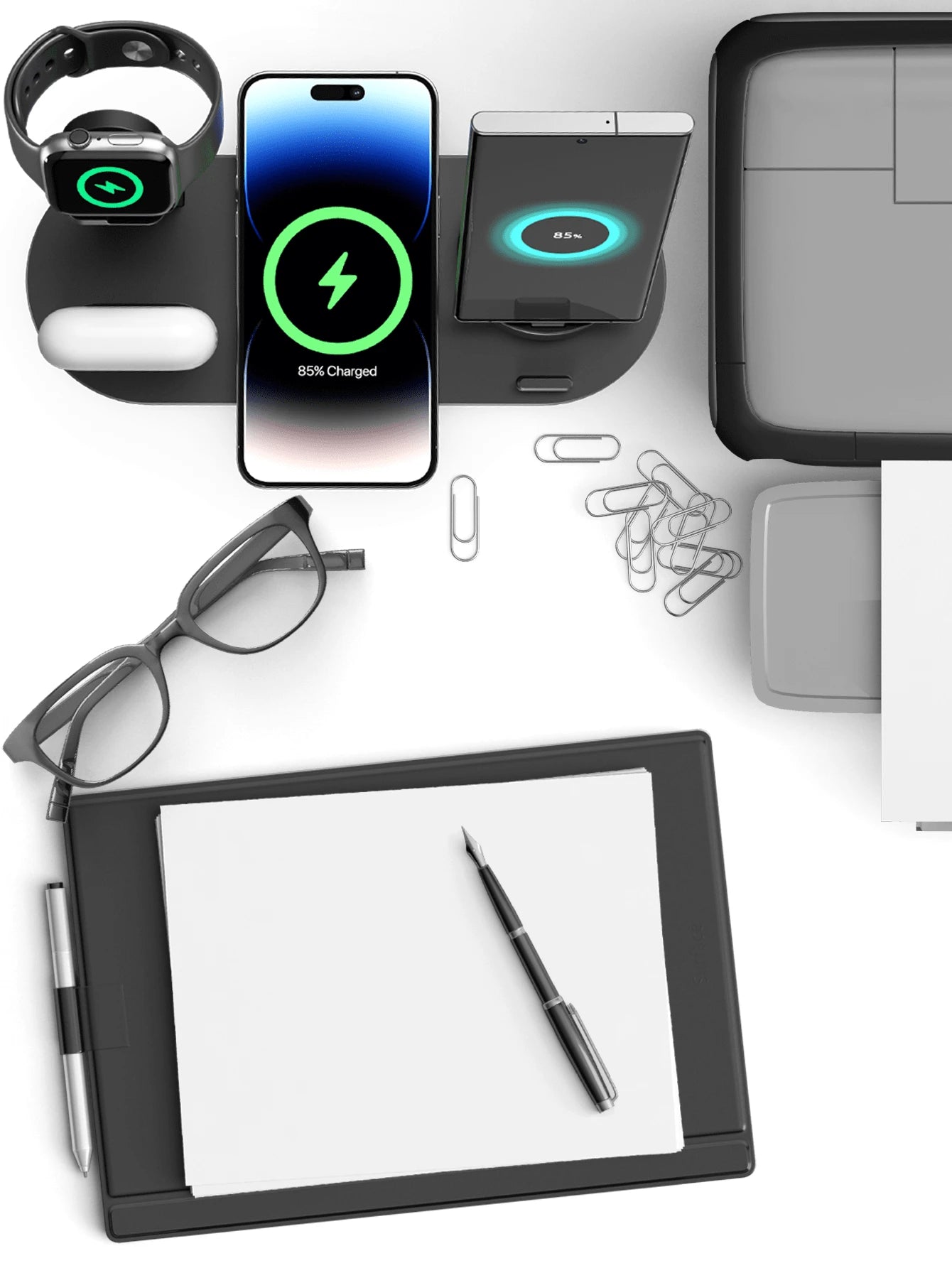 The 6-in-1 Multi-Device Charging Station offers a streamlined solution for charging multiple devices simultaneously. Designed for efficiency, it accommodates up to six devices, reducing clutter and optimizing power delivery. Ideal for both home and office use, this station supports various gadgets, ensuring reliable and organized charging while protecting your devices from overcharging or overheating. Enhance your workspace with this expert-grade charging solution that keeps your technology ready and accessible at all times.