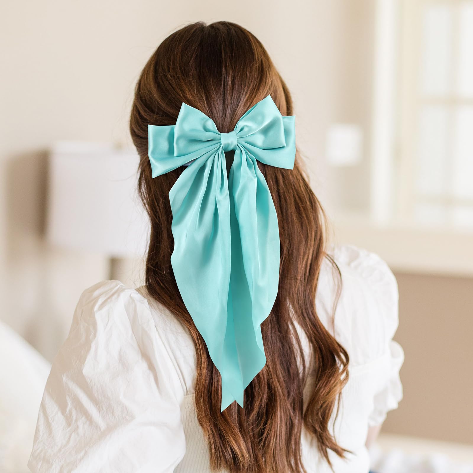 6 PCS Hair Bows for Women, Big Bow Hair Clips for Girls, Silky Satin Hair Bows Clips Oversized Long Tail, Large Cute Aesthetic Hair Accessories, Metal Bow Hair Clips Holiday Gifts