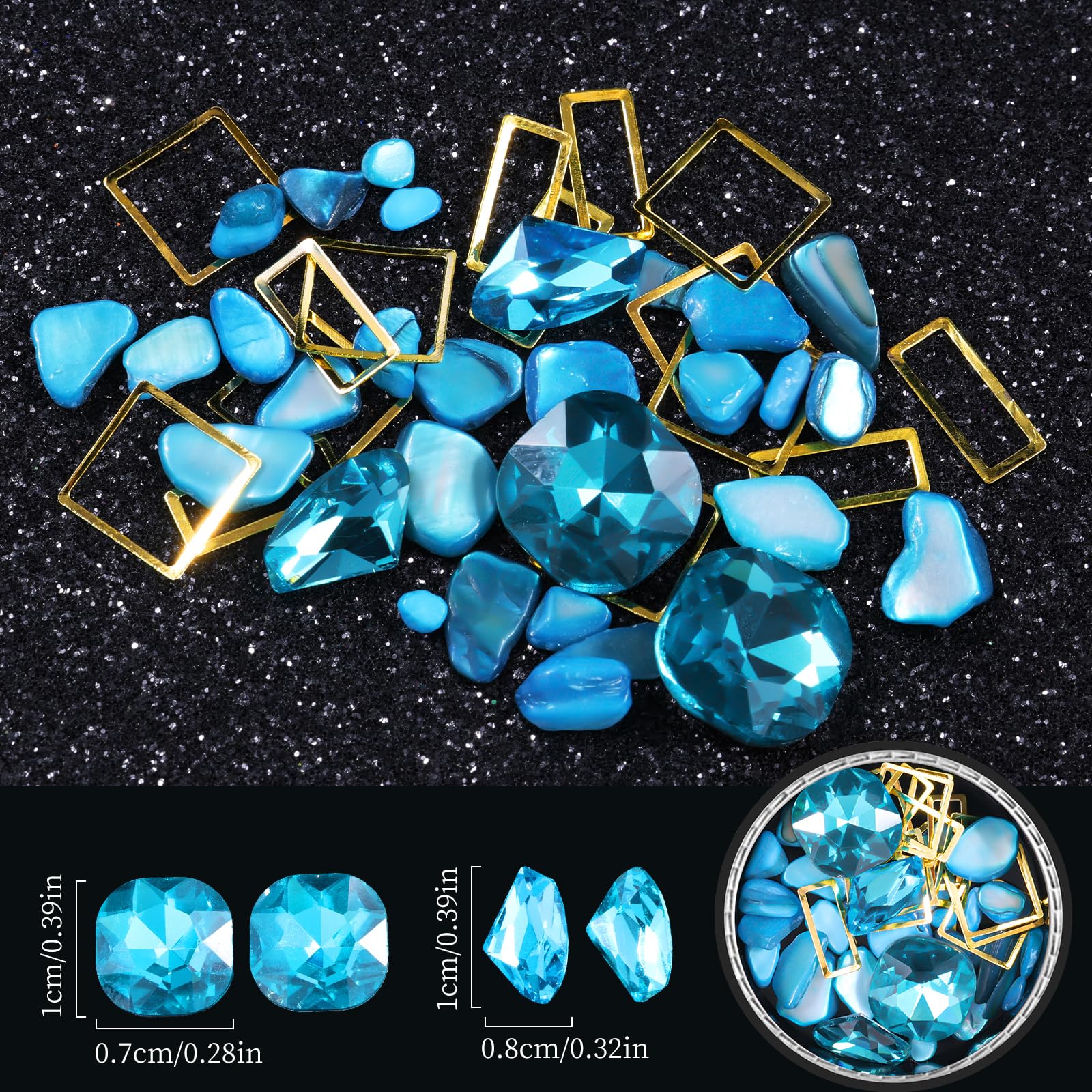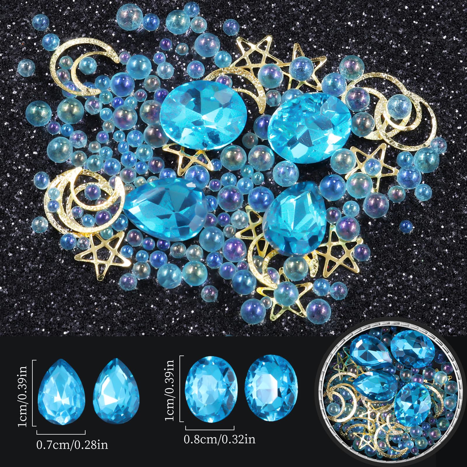 6 Wheels Mixed Sparkle Nail Art Rhinestones Diamonds Crystals Butterfly Beads Artificial Pearls Gold Silver Nail Studs Gems Metal Hollow Rivets Charms (Lake Blue)