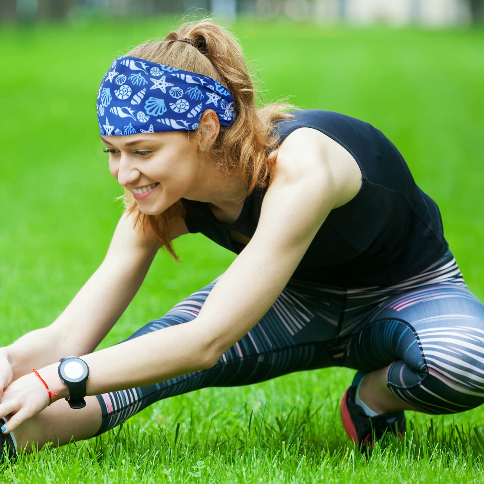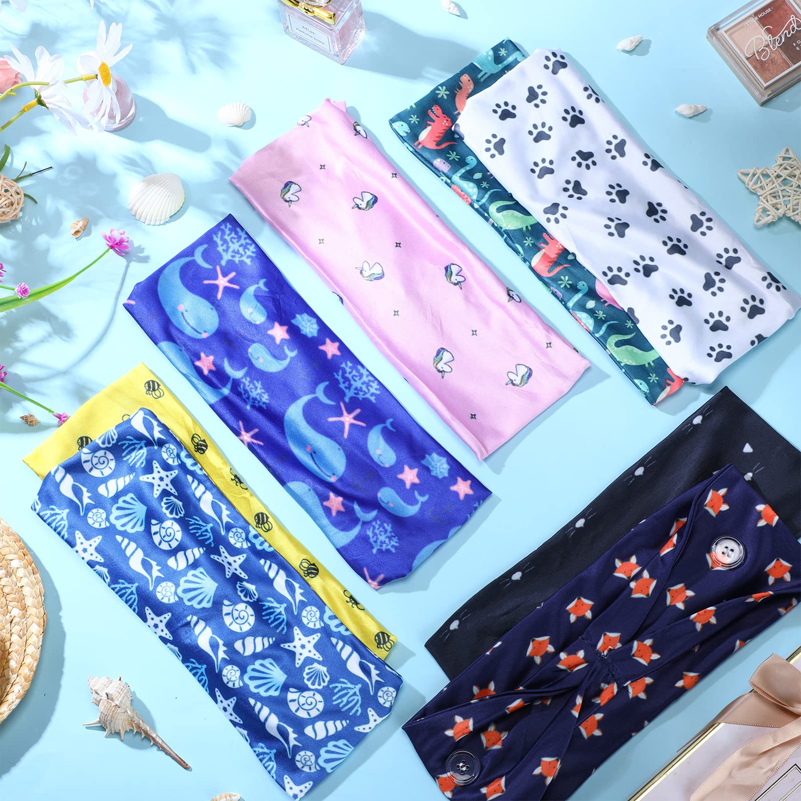 8 Pieces Nursing Headbands with Buttons for Nurses Doctors Women Face Covering Ear Protection Holder Non Slip Elastic Hair Bands Wide Head Wraps for Spa Yoga Sports Workout (Classic Patterns)