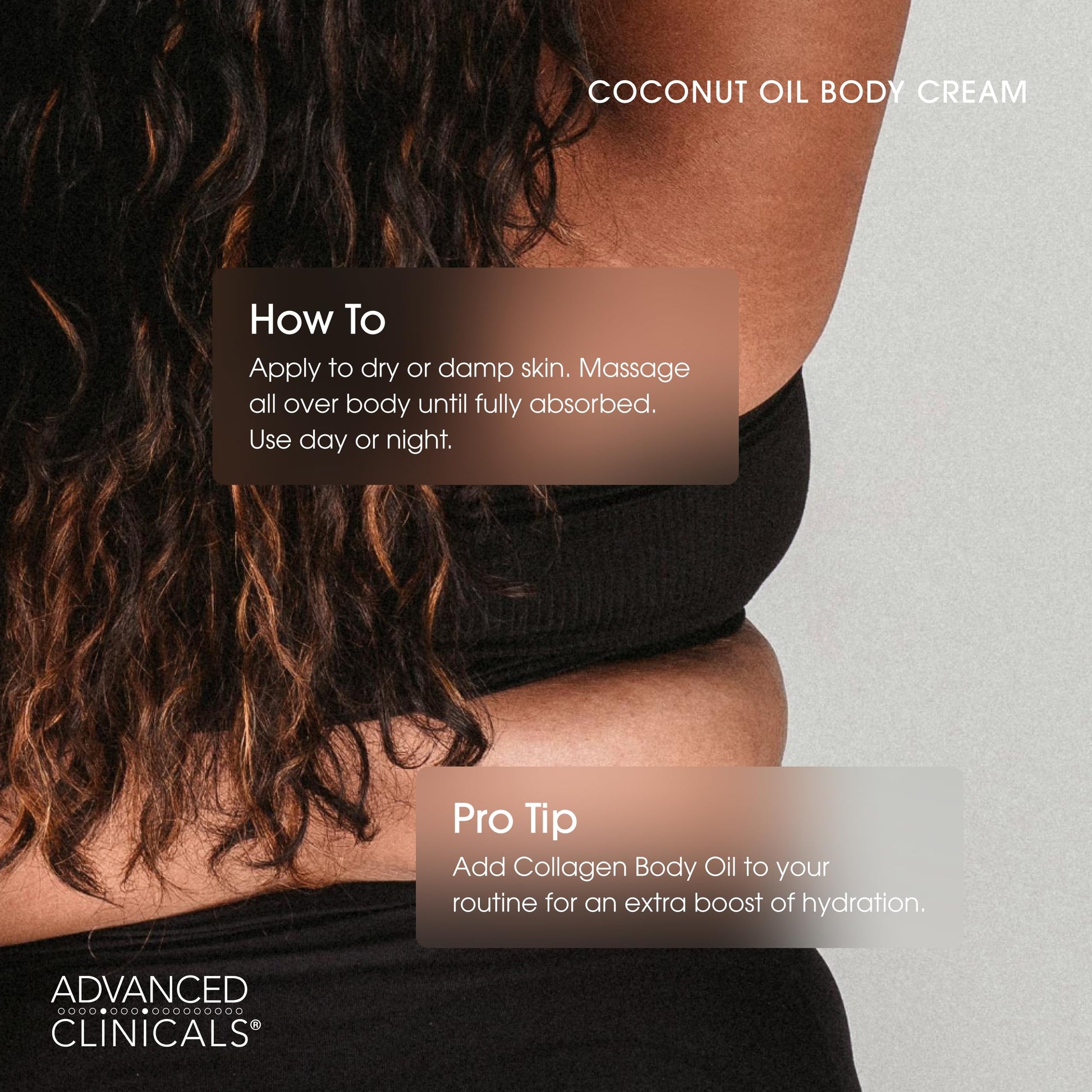 Advanced Clinicals Coconut Oil Body Cream For Women & Men | Hydrating Coconut Lotion For Extremely Dry Skin | Visible Anti Aging Body Butter Skin Care Balm Moisturizer For Hand, Heel, Feet, 16 Ounce