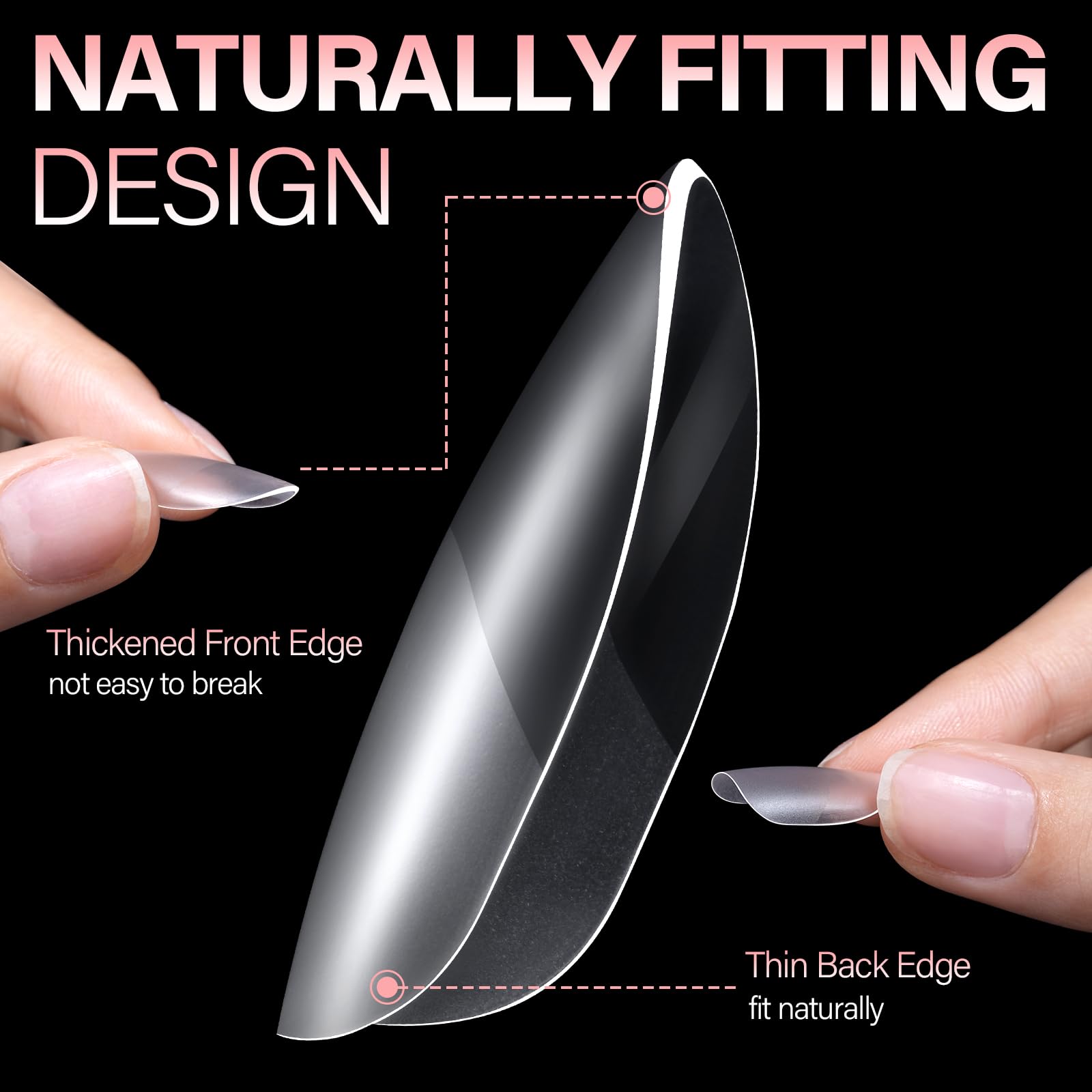 - Natural Fit Effect: Our gel tips feature “Thin back edge, thick front edge”. The thinner back edge can make the full nail tips fit your nails better, which will not make you feel uncomfortable. Also, the clear nail tips are more breathable, which will not cause burden and pressure on your fingers; The thickened front edge makes it not easy to break or bend, having longer lifespan. Just like your natural nails, do whatever you want