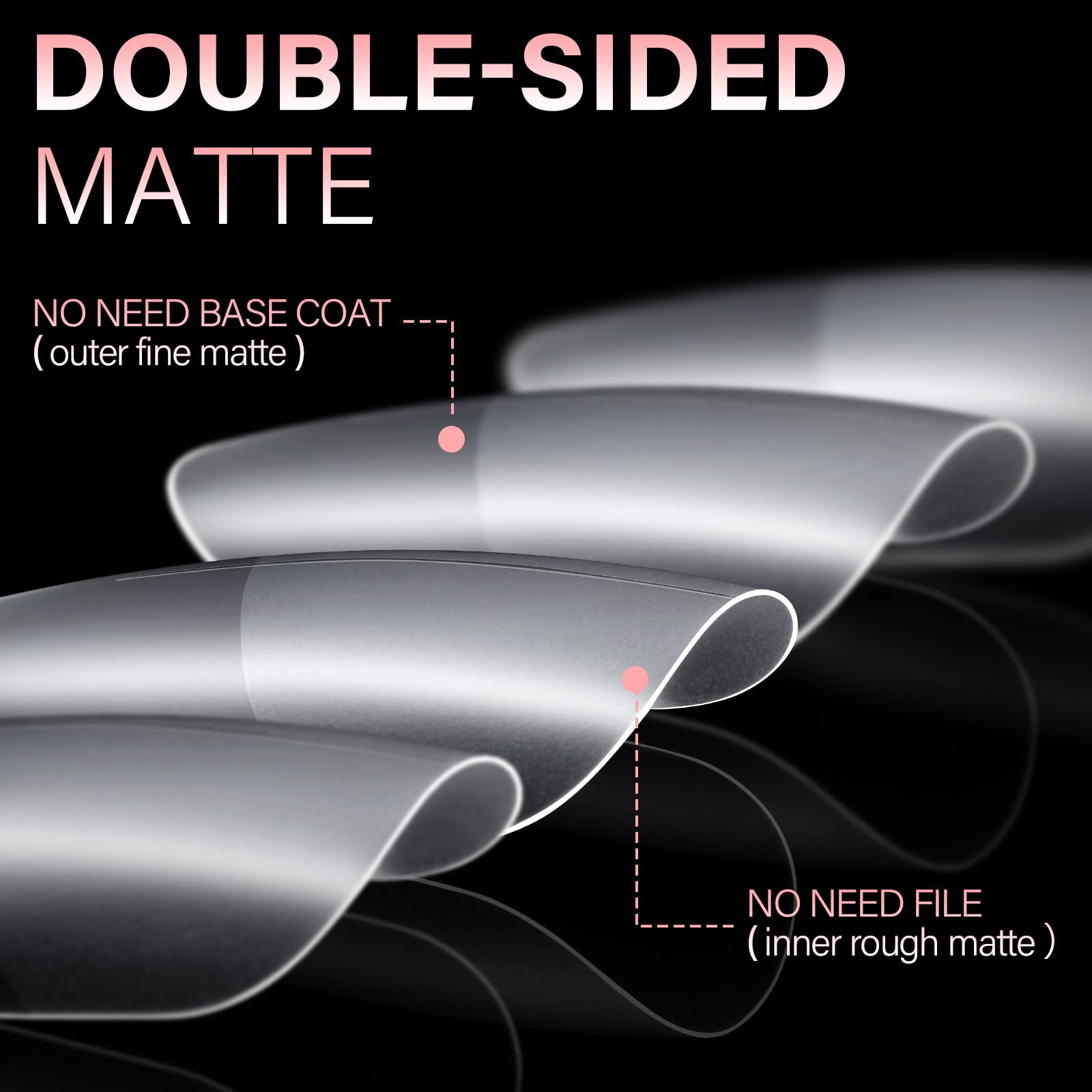 - Upgraded Design: The nails tips have a center line in the middle, which can accurately position and avoid crooked pasting. The gel nail tips inside adopt rough semi-frosted texture, having stronger adhesion, no need to file; the outside of gel tips use fine full matte texture, no need to apply base coat. Saving your time and money