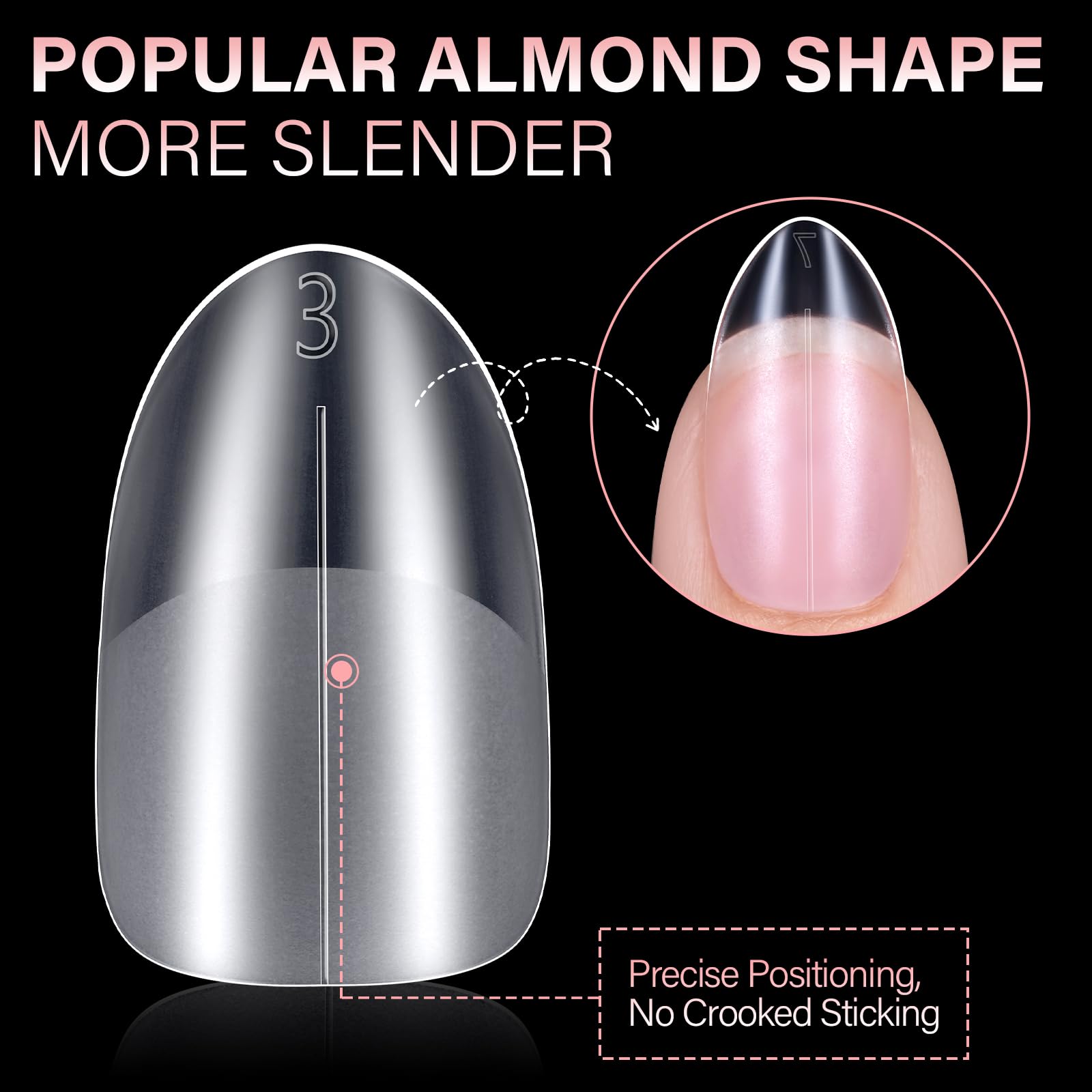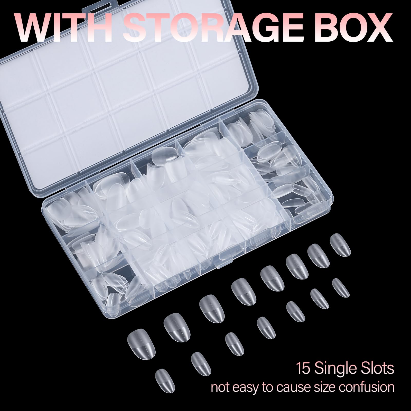 AILLSA Short Almond Nail Tips with Box, 15 Sizes Press On Gel Nail Tips Double Matte Pre-Buffed Almond Shaped Nails Tips Soft Full Cover Clear False Nail Tips for Nail Extension 240PCS