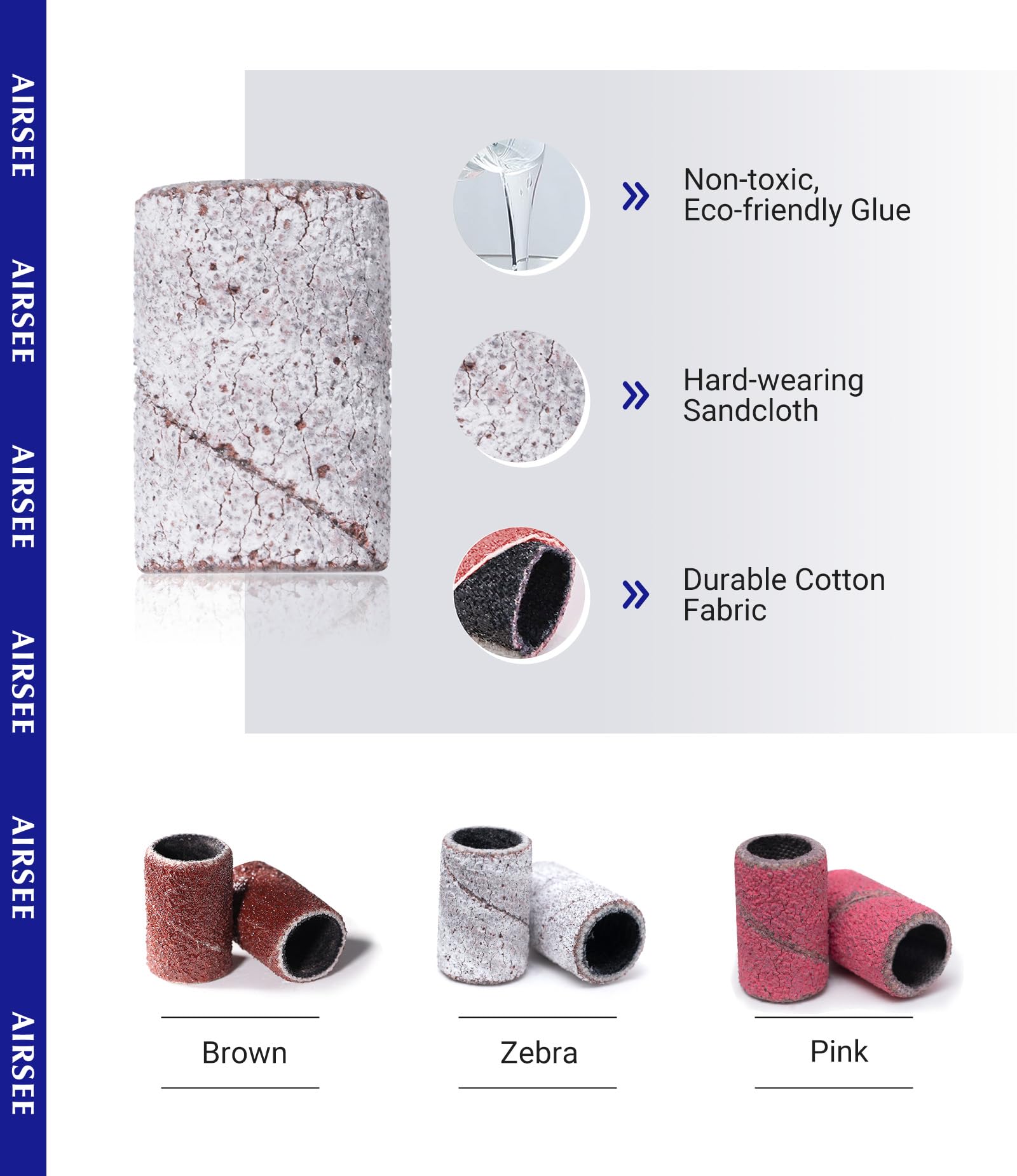 AIRSEE Sanding Bands for Electric Nail Drill 100 Piece Set 120 Grit Coarse Acrylic File Attachments Professional 1 Sander Mandrel Bit Beauty Salon Accessories Manicure and Pedicure Finger Callus Zebra
