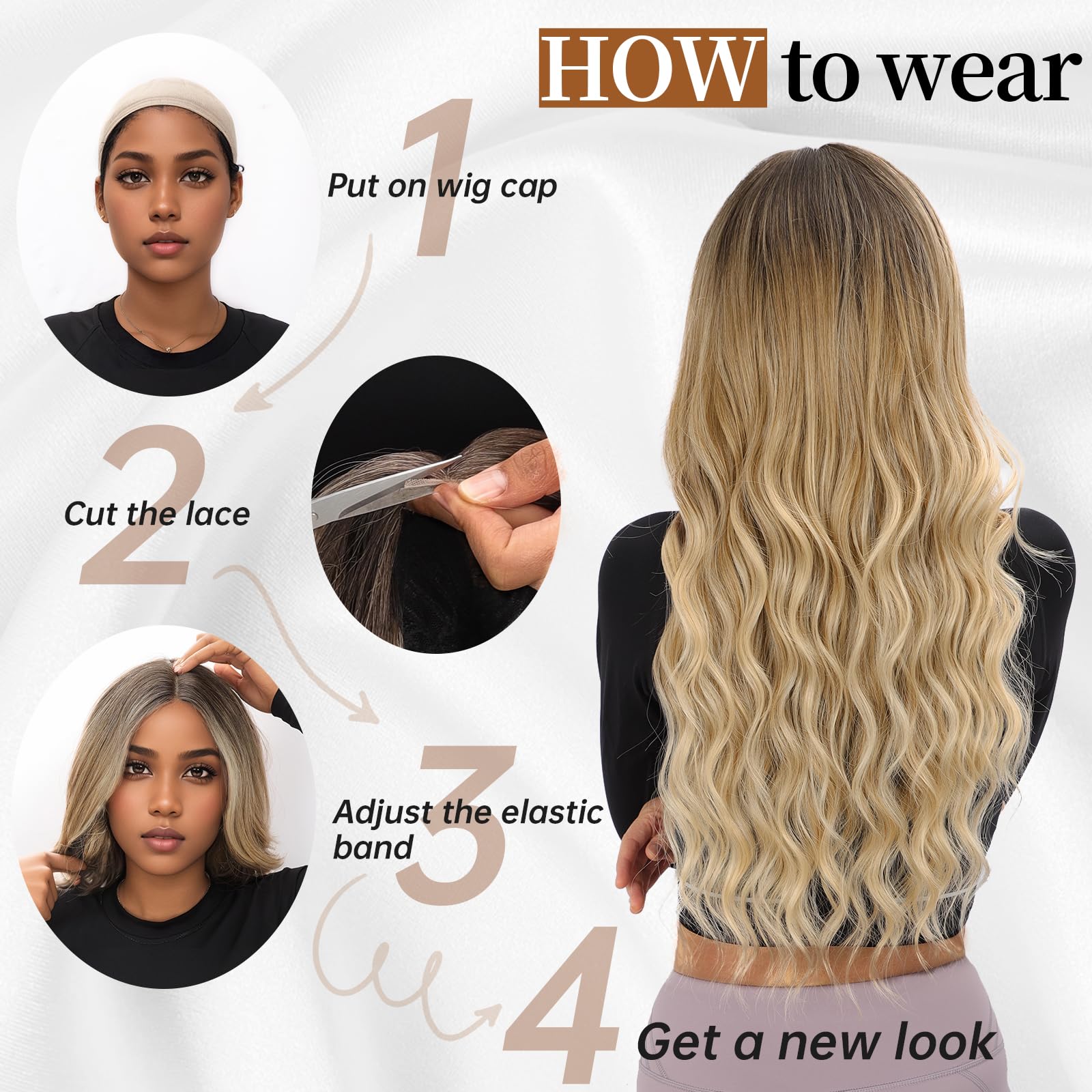 - 【New upgrade hair seam】This long wavy wig adopts a new and upgraded process at the hairline. It's lace hairline , which makes it more natural to wear, no need to use glue, does not hurt the forehead skin, easy to wear, and saves you a lot of time.