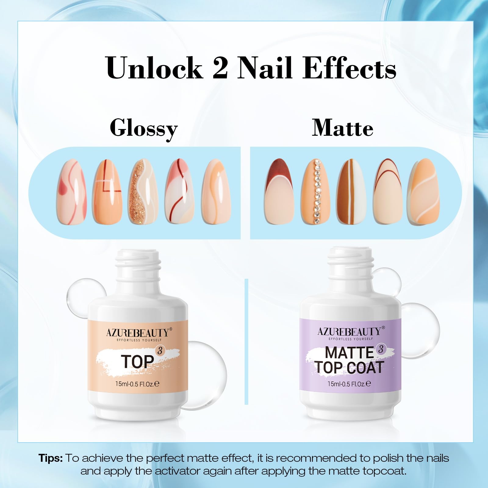 AZUREBEAUTY Dip Powder Liquid Set Bond, Base, Glossy Matte Top Coat, Activator, Brush Saver Dipping Powder Essential Tools No Nail Lamp Needed 0.5Fl oz 15ml 6Pcs
