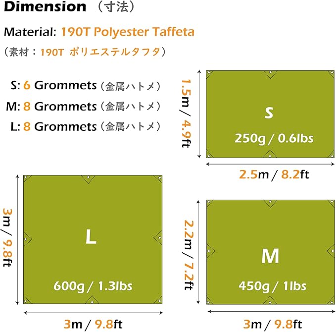 - ✅ WATERPROOF - Our camping tarp is made with ripstop 190T Polyester Taffeta, taped seams, and an impenetrable water barrier for cover against all conditions