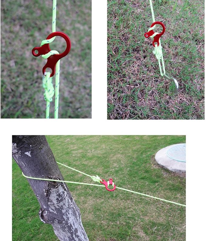 Pack of 10 Aluminum Guyline Wind Rope Buckle Cord Adjuster for Tent Camping Hiking Backpacking Outdoor Activity, Red