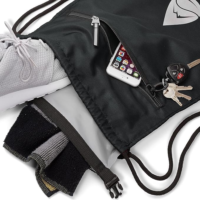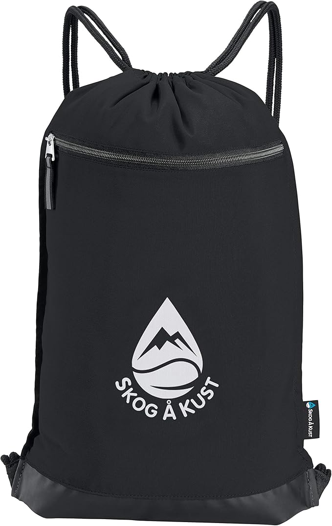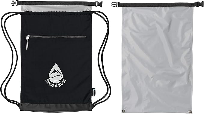 Skog Å Kust GymSak | Patented 2-in-1 Drawstring Cinch Bag with Removable Waterproof Dry Bag | Black & Grey