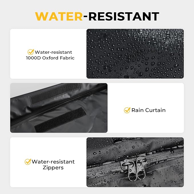 - Waterproof Zippers: The zippers of BougeRV hitch mount cargo carrier are heavy-duty and waterproof and are recessed under a protective flap to provide additional protection from rain