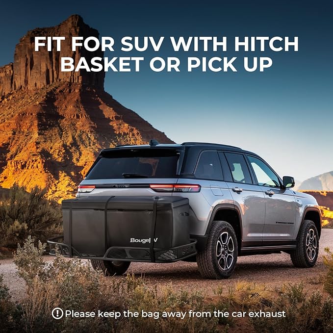 - Expandable Design: BougeRV hitch cargo carrier bag is made with rainproof 1000D polyester material with the dimensions of 48' long x 20' wide x 22' high with a maximum of 12 cubic feet volume capacity. Can be easily folded for compact storage