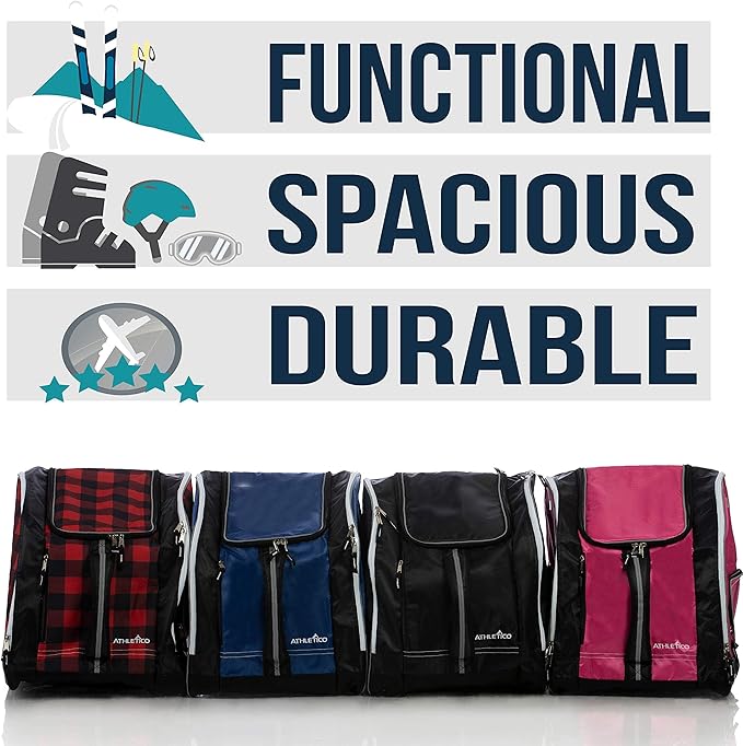 Athletico Ski Boot Bag – Skiing and Snowboarding Travel Luggage – Stores Gear Including Jacket, Helmet, Goggles, Gloves & Accessories – Venting and Grommets for Snow Drainage