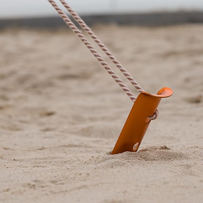 - ✅ HOLDING POWER -- Each Hole in sand tent pegs can adjust and lock the rope to prevent it skids away. You also could tie the ropes to these stakes top. Nail the peg into the sand or snow with 45 degrees to the ground