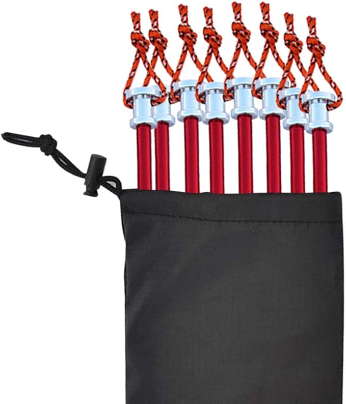 - ✈ One packing comes with 8pcs stakes and 1pc portable storage bag.