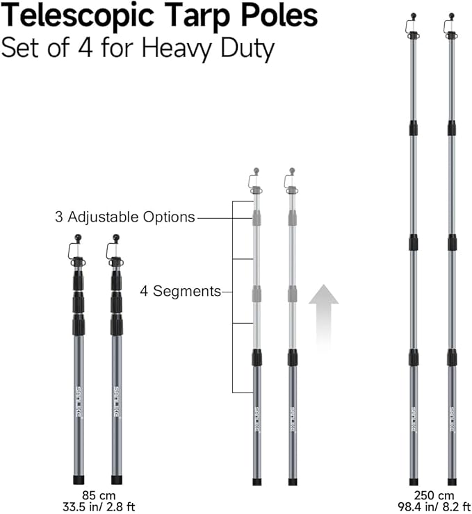 - Included Components : 2 Telescopic Tarp Poles, Storage Bag
