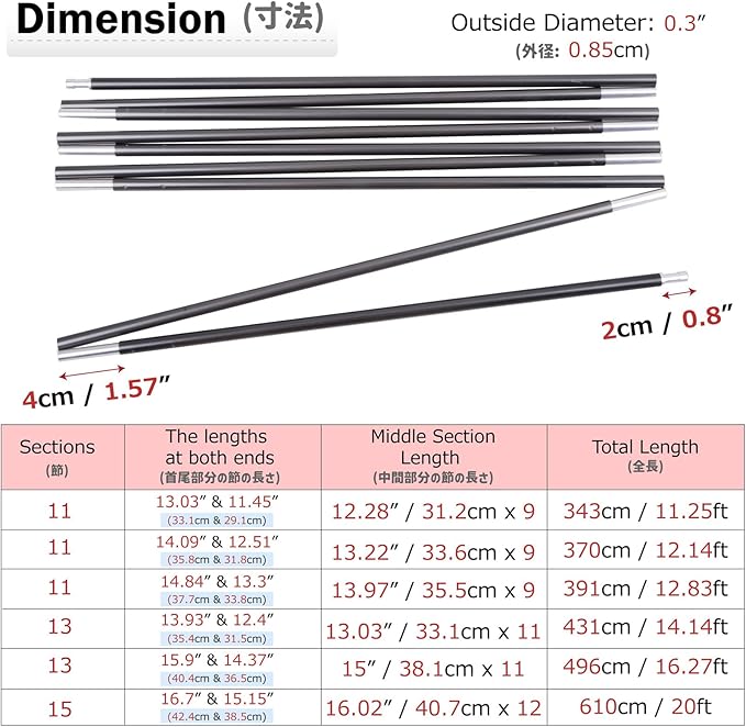 - π¦ MATERIAL: Made of the highest quality 7001 series aircraft grade aluminum and high elastic rope. This ensures that the poles can bend well, while many cheap aluminum poles will wrinkle or snap. Every pole sections are carefully handled for a smooth connection between pole sections for your really quick set-up / takedown