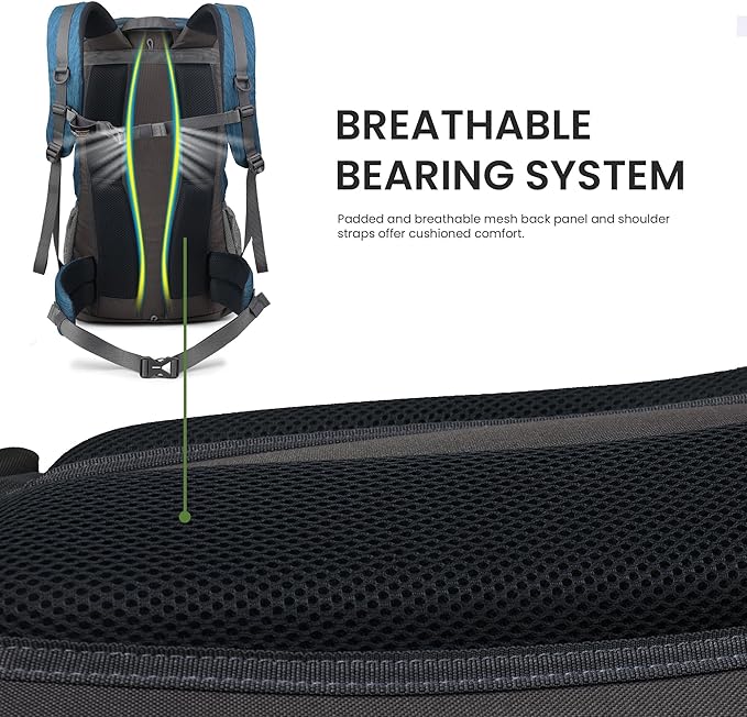 - Comfortable and Breathable: This travel backpack uses breathable mesh padding and a ventilated back system to keep your items dry and ventilate your back. The ergonomically designed structure helps to evenly distribute the weight, making it comfortable to carry while hiking.