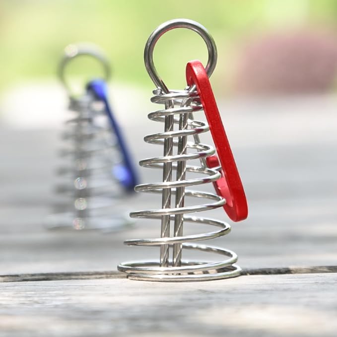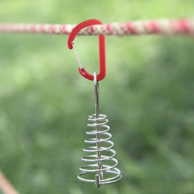 TRIWONDER 6pcs Deck Plank Board Tent Stakes Aluminum Spring Anchor Fishbone Guyline Cord Adjuster Tent Pegs with Carabiners for Outdoor Camping Hiking