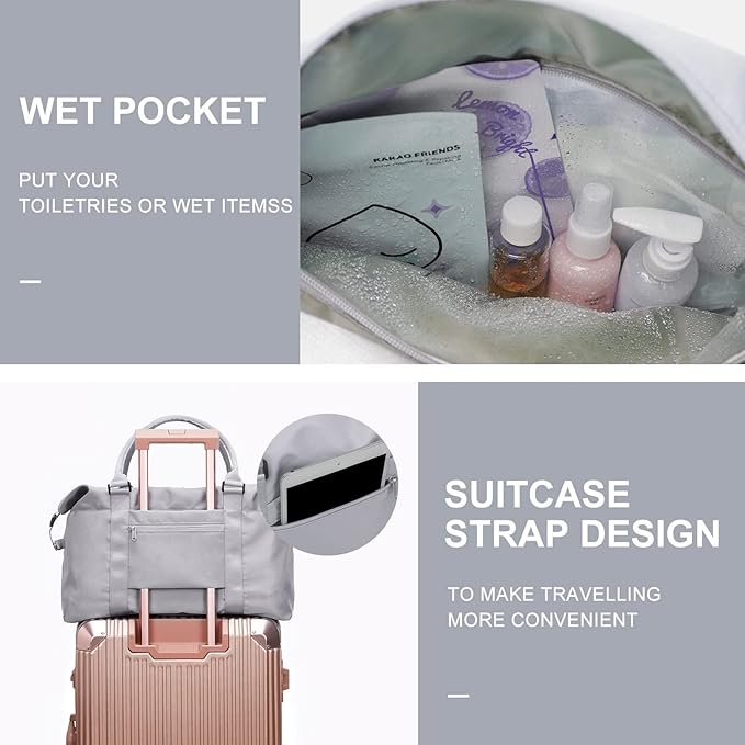 Womens travel bags, weekender carry on for women, sports Gym Bag, workout duffel bag, overnight shoulder Bag fit 15.6 inch Laptop (Large, Grey)