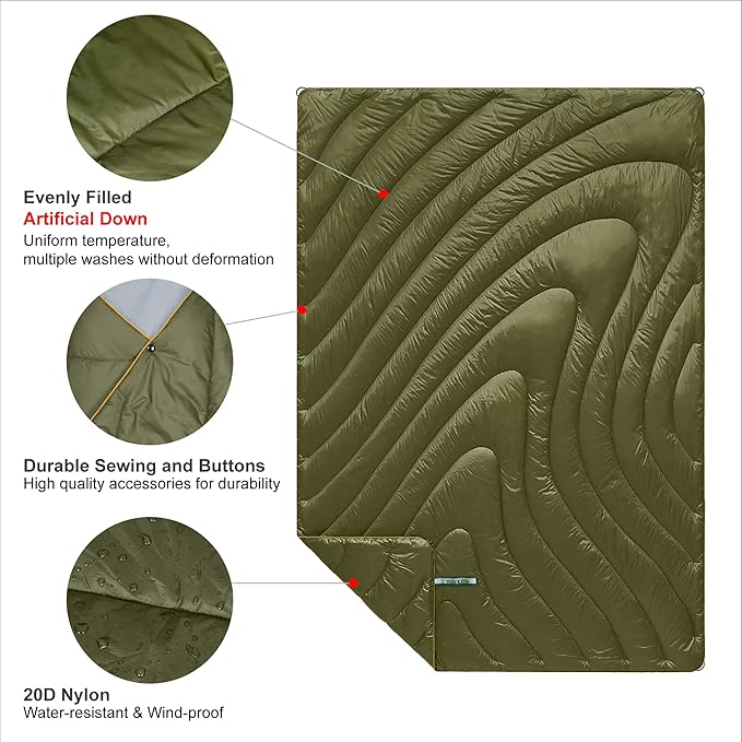 4Monster Double Puffy Camping Blanket - Extra Puffy Outdoor Blanket, Portable, Lightweight and Warm,Insulated Camping Quilt for Outdoors, Travel, Stadium, Festivals, Beach, Hammock