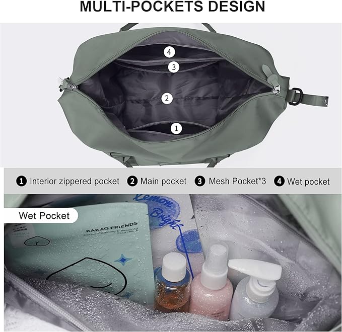 - ✅【Large and Multiple pockets Overnight bag】This overnight bag has six multiple internal and two external organizational pockets,which ensure you have a place for everything.The dimensions of the overnight bag for women are 10.63'*21.65'*7.09'.You can carry it onto an airplane. Large storage space for a clothes for short trip. It has a capacity of 30L and can hold 6 to 8 pieces of summer clothes,Cosmetics, toiletries, wallets, keys, earphones, mobile power, mobile phones, files.