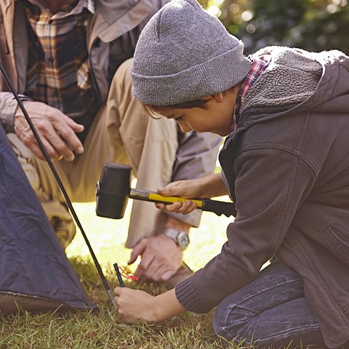 - ✔ PACKAGE CONTENT: 12 PACK tent stakes pegs with reflective pull cords + 1 carrying pouch