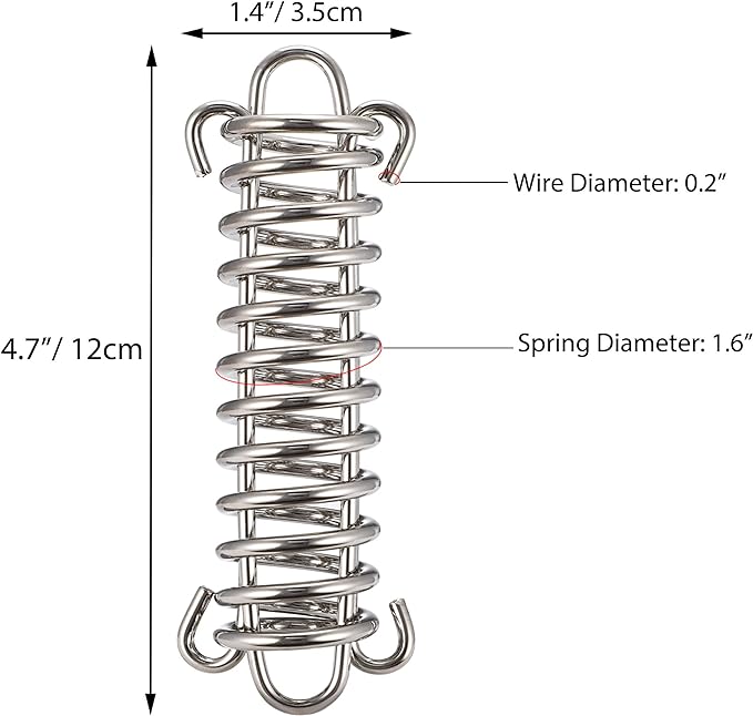 - 【Easy to Install】-- Just put the rope or chain through one end of the spring, and you can finish installation without using any tool. The special design of spring can ensure spring will not break even if it exceeds the load capacity.