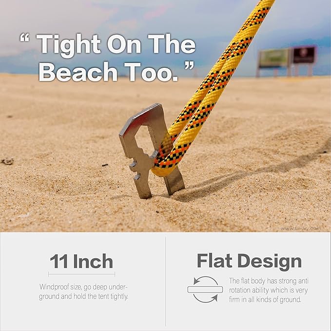 - Multifunctional - LiJIu Tent pegs have the functions modular of screw wrench, bicycle spoke wrench and bottle opener without affecting the strength, which adds a little convenience to the journey.