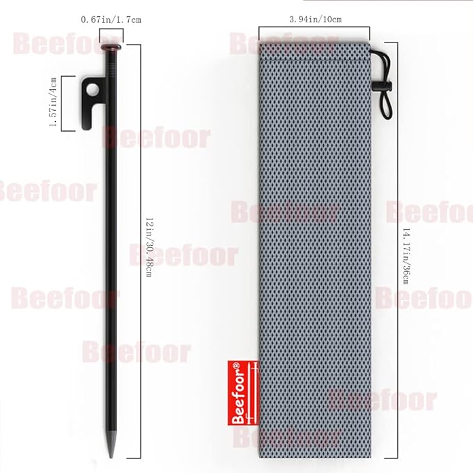 - ▶Stakes Size: The tent stake about 12 inches (30cm) long and 0.35 inches (0.9cm) in diameter which is much bigger and stronger than most stakes on the market.