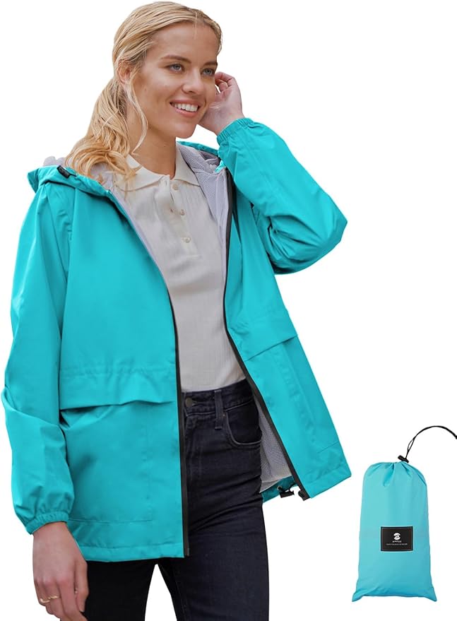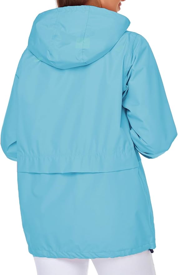 SaphiRose Lightweight Rain Jacket Women Waterproof Breathable Raincoat Packable Hooded Windbreaker