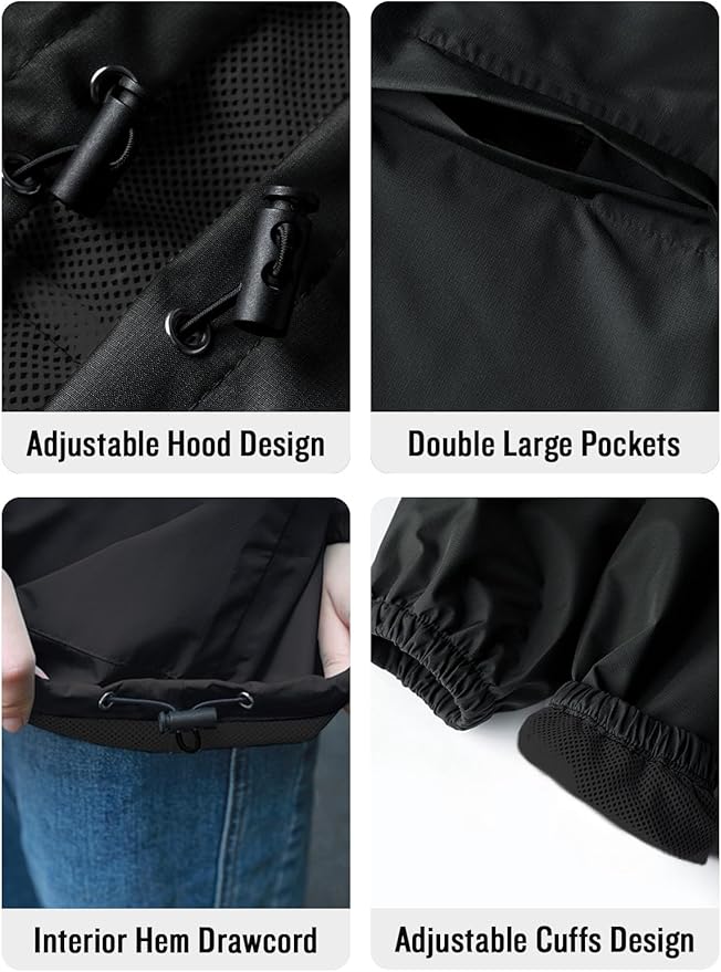 - 【Portable and Versatile】: Lightweight and easy to pack, this raincoat comes with its own bag, perfect for camping, hiking, and running. Its portability ensures you can take it anywhere without hassle, and when not in use, the compact bag fits easily into your pocket for convenience outgoing.
