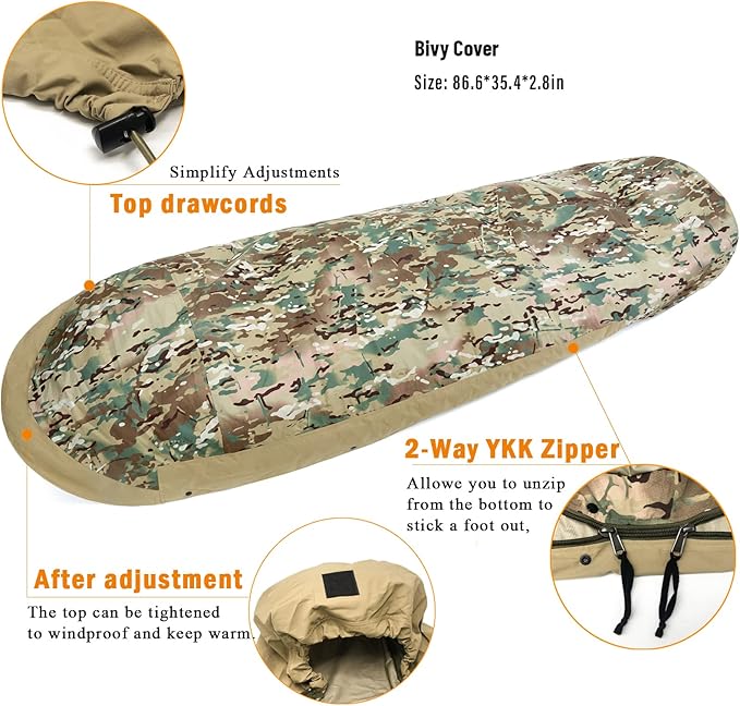 MT Army Military Modular Sleeping Bags System, Multi Layered with Bivy Cover for All Season, Woodland/Multicam