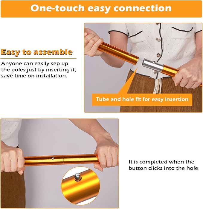 - EASY OPERATION: Each joint of the tent pole is used by a stainless steel spring connector. All you need to do is to push two sections of poles into the holes to complete the installation. If you want to detach it, press the button to remove it from the holes. The tip of the pole is also made up stainless steel, so it is suitable for all types of tents.