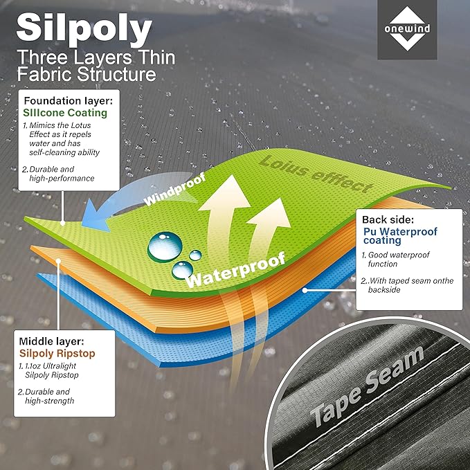 - SUPERIOR PROTECTION AND WATERPROOF. Measuring 12 x 9.7ft our Hammock Tarp offers wide coverage and delivers excellent shielding from the elements - rain, sun, and wind. It's made from 1.1oz 20D ultralight ripstop silnylon which is strong, durable, waterproof, windproof snowproof, and much lighter than 210T fabric. It also features PU 4000mm coating on inner face and silicone coating on outer face to make the rain slide down faster.
