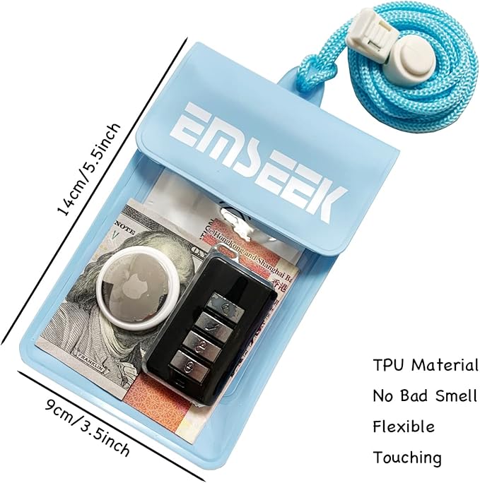 - 3.Floating Design. EMSEEK Floating Waterproof key bag can float in water if you keep enough air inside to close even full loaded. No Worry your valuables sink any more. Please test this ability first if you want it float before using in deep water.