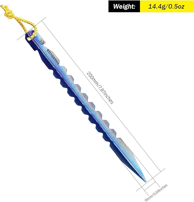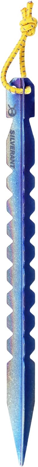 - ๐๐ข๐ ๐ก๐ญ๐ฐ๐๐ข๐ ๐ก๐ญ - The long SilverAnt Y-shape titanium tent stake weighs only 14.4g per stake. Making it significantly lighter than stainless steel tent stakes or similar titanium tent stakes available. Ideal for backpackers, thru-hikers, and campers looking to minimize their gear weight, the long titanium tent stake provides secure anchoring without sacrificing strength.