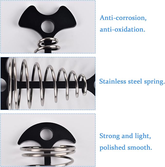 - 【Strong Stability】Deck tent cord tensioner and carabiner made of aluminum alloy and stainless steel spring, durable and sturdy. Deck board anchor hook stabilize umbrella stands in windy conditions.