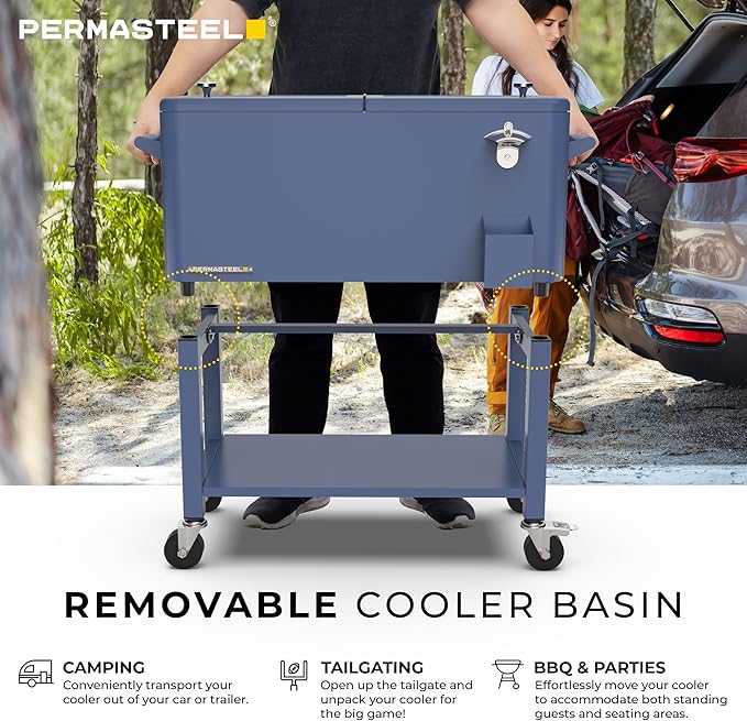 - Detachable & Portable Design - Take the party anywhere you go with the Permasteel outdoor cooler featuring a detachable and portable basin. This drink cart is perfect for beach days, park barbecues, birthdays, holidays, and more.
