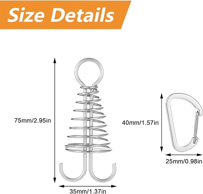 - [Slip & Adjustable Spring]:These deck nails are designed in an octopus shape, and the bottom double hook design creates stability better and prevents the nails from falling off or rotating due to the shaking of the tent. The telescopic spring shape can be adapted to decks of different thicknesses