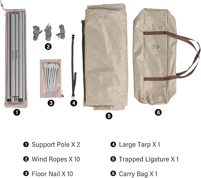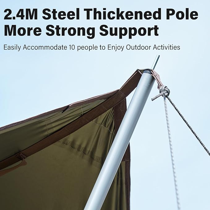 - Sturdy and Windproof: Embrace the great outdoors without worry. Our camping tarp features an upgraded and thickened canopy pole, measuring 2.4 meters, ensuring stability and durability. It stands strong against strong winds, giving you peace of mind during your adventures.