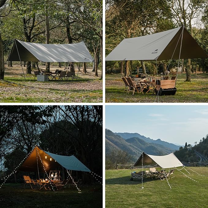 Naturehike Camping Tarp, 16X12FT Tarp with 2 Poles, Waterproof Camping Tarp Car, Lightweight Camping Tarp Sun Shelter PU5000mm in Camping, Hiking, Backpacking, Garden and Traveling