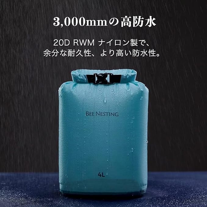 - 5,000mm High Waterproof- This waterproof bag is made from 20D RWM nylon with a smooth siliconized finish, waterproof membrane lining, and PU tape sealing. With a 5,000mm waterhead rating, it offers superior protection from moisture, ensuring your belongings stay dry even in the wettest conditions.